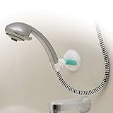 Place your hand-held shower head exactly where you need it. Strong suction cup attaches easily to any smooth, dry surface with an easy-release tab. Swivels 360 degrees and holds most hand-held shower heads.